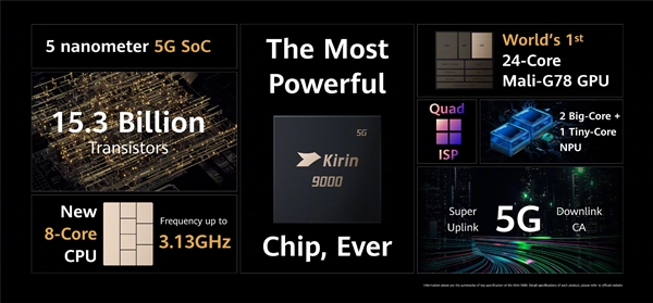 麒麟9000震撼發(fā)布!唯一5nm 5G SoC、150億晶體管舉世無雙